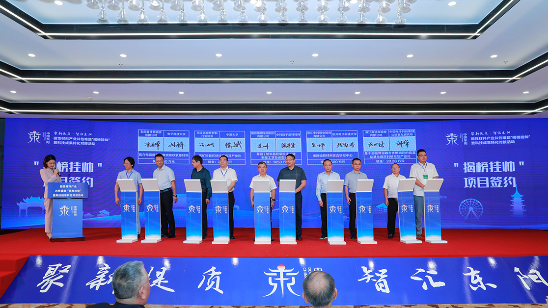 活動(dòng)內(nèi)容豐富,形式多樣。一批前期發(fā)布并已成功實(shí)現(xiàn)對(duì)接合作的“揭榜掛帥”項(xiàng)目、科技成果轉(zhuǎn)化合作項(xiàng)目、上下游產(chǎn)業(yè)鏈合作項(xiàng)目在會(huì)上集中簽約。還聘請(qǐng)了浙江大學(xué)、浙江工業(yè)大學(xué)、杭州電子科技大學(xué)、安徽大學(xué)的四位專家教授為東陽市磁性材料產(chǎn)業(yè)發(fā)展顧問。